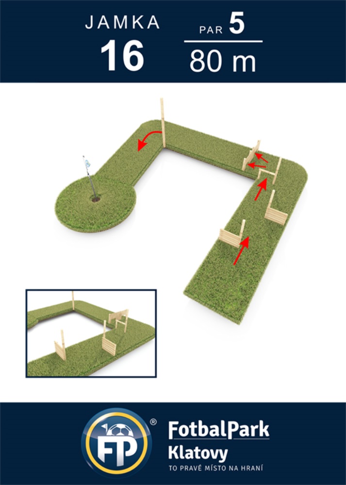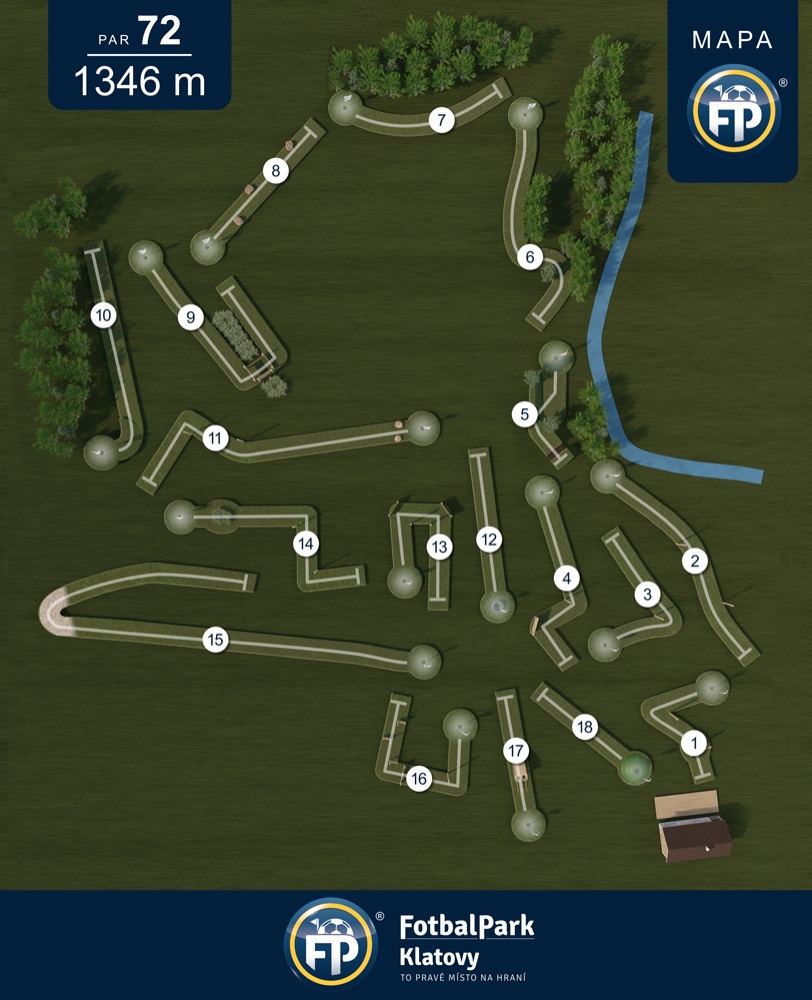 Fotbalpark Klatovy najdete na okraji města, při výjezdu z města směrem na Horažďovice pod benzinovou pumpou Robin Oil. Hřiště najdete v blízkosti městského kolbiště a navazuje na rekonstruované Mercandinovy sady. Na necelých 5 ha máte certifikované, 18ti ti jamkové hřiště na fotbalgolf včetně kompletního zázemí, klubovny s velkou terasou, šatny a toalet. Nově jsme přistavěli i 6 drah na petanque.